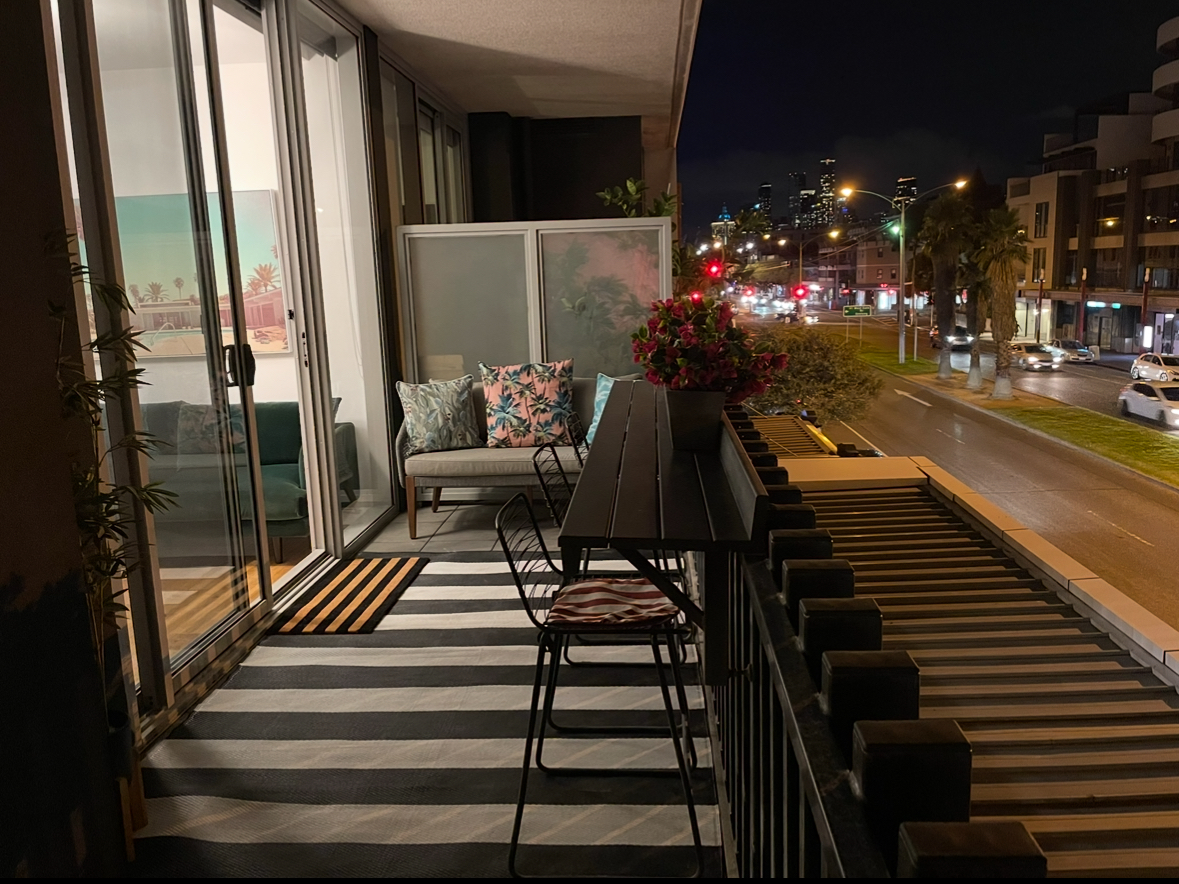 Just 250m from the beach and close to public transport, it's situated in the heart of Melbourne's vibrant Bay Street. The expansive balcony offers views of the beach, city skyline, and Bay Street's lively café scene, perfect for soaking up Melbourne's iconic evenings.