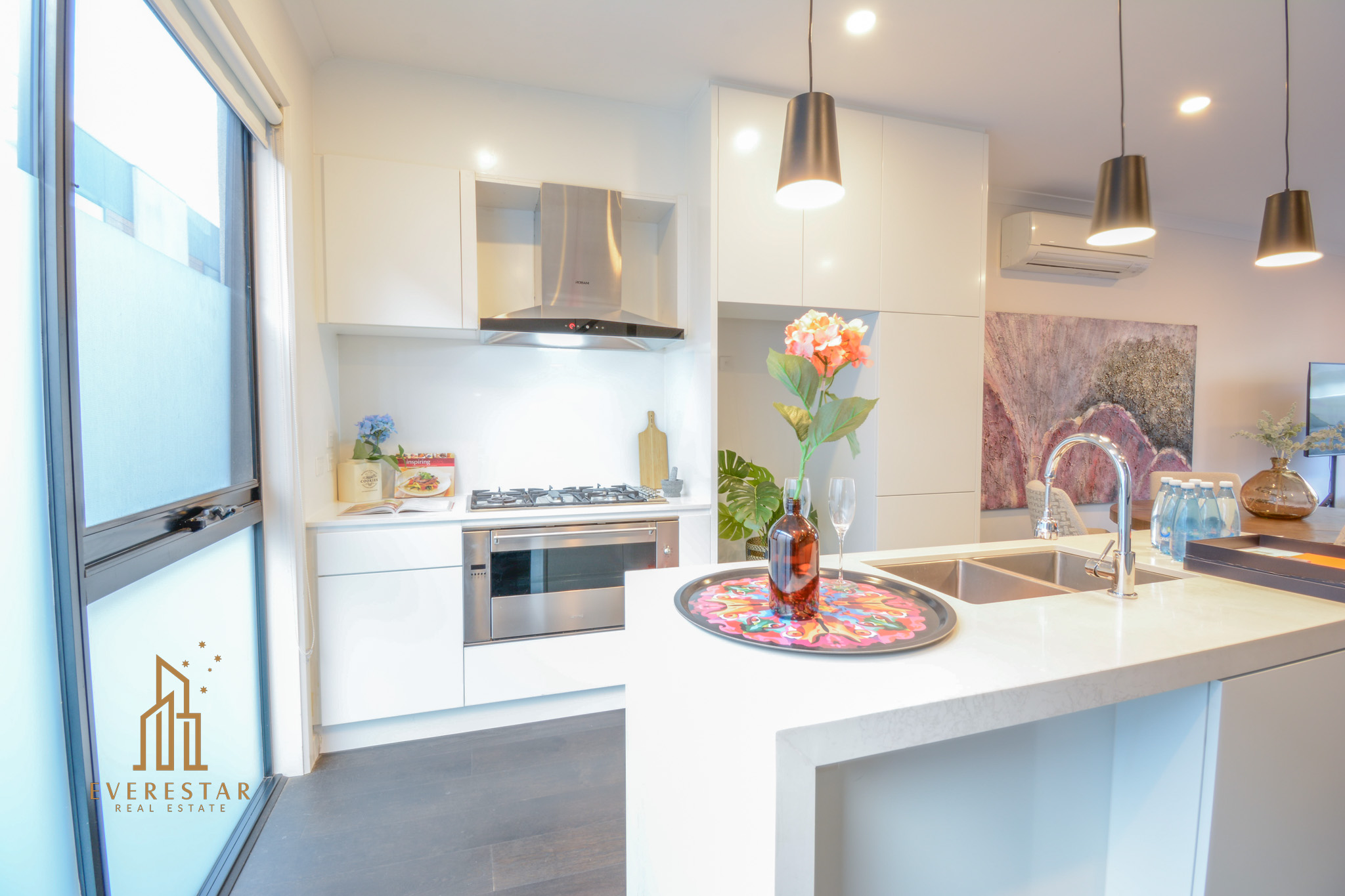 appliances are perfectly complemented by beautiful oak timber floors, creating an inviting space for social gatherings. Step out onto the sunny, full-width balcony through sliding doors for even more room to relax and entertain.